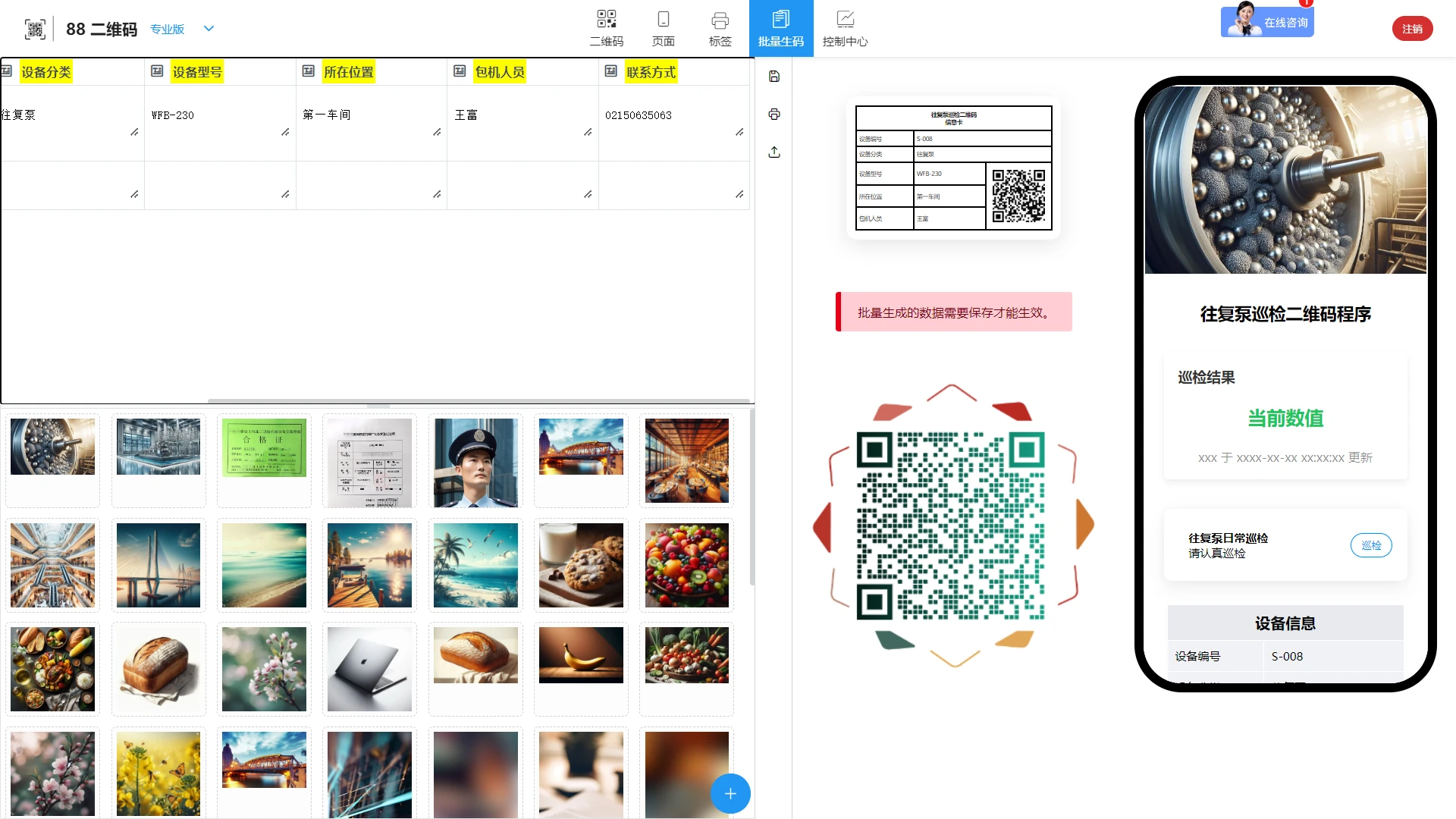 支持自定义往复泵巡检二维码的功能