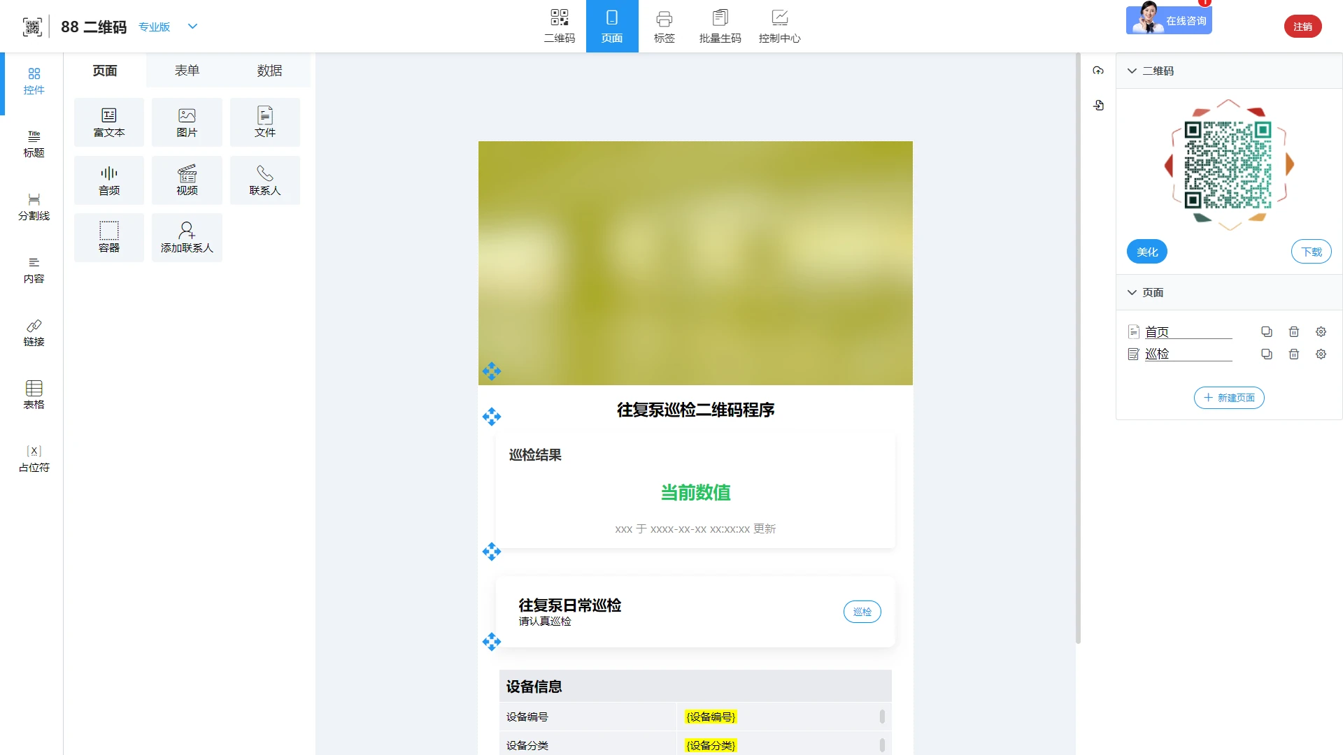 内置往复泵巡检二维码模板,还可以此为基础定制